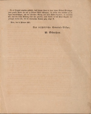 In der Instruktion werden den Pfarrern in der Diözese Trier die Anweisung erteilt, wie die Finanzierung der Stiftungen zu regeln sei. Als Basis wurden die Kirchen in Trier genannt. Es erging an die Pfarreien, hier besonders die Koblenzen Pfarrei genannt, die Anweisung das Prozedere der Trierer Pfarrei zu übernehmen. Federführend wird das Kommissariat in Ehrenbreitstein genannt.