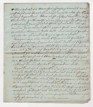 Geschöpftes Papier mit vierfach Faltung (1 Blatt Hoch 210 mm; Breit 180 mm); 5 beschriebene Seiten