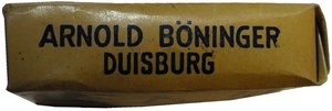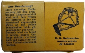Gelbe Kartonverpackung mit schwarzem Druck. Ohne Steuerbandarole. Die Verpackung ist noch mit Tabak gefüllt.