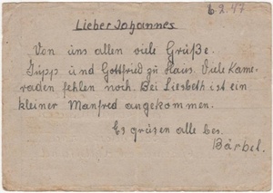 Die Postkarte ist vom Internationalen Roten Kreuz in russisch gedruckt worden und stellte die einzige Möglichkeit der Korrespondenz zwischen Kriegsgefangenen und ihren Familien dar. Dazu stand nur eine beschreibbare Fläche von 10,5 x 14,9 cm zur Verfügung. Sehr wenig Platz für ausführliche Korrespondenz, die noch so gehalten werden musste, das deren Inhalt nicht von Zensur als bedenklich oder gefährlich eingestuft und die Weiterleitung an den Empfänger verboten wurde.