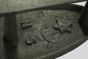 Das leichte Flachbügeleisen gehört zu den massiven Volleisen, die aus Eisen oder Stahl geschmiedet oder gegossen und bereits ab dem 18. Jh. hergestellt wurden. Aufgrund seines geringen Gewichts und seiner flachen Sohle, die nahezu mühelos über die vorher mit Wasser besprengte Wäsche gleitet, erfreute es sich noch weit bis ins 20. Jahrhundert hinein großer Beliebtheit. Das Erhitzen auf dem Kohleofen oder in einer offenen Feuerstelle wie dem Kaminfeuer erforderte jedoch verschiedene Vorsichtsmaßnahmen, um die Bügelwäsche nicht zu beschmutzen oder sich am fest verbundenen Metallgriff zu verbrennen. Viele Büglerinnen wischten daher nach dem Erhitzen des Eisens mit einem Tuch, das sie an ihrer Schürze befestigt hatten, über die Bügelsohle. Als Hitzeschutz wurde oftmals ein dicker Handschuh oder ein Lappen, der um den Griff gewickelt wurde, verwendet. Trotz seiner Zweckmäßigkeit weisen viele Flacheisen eine Verzierung der Deckplatte auf, die heute eine Herkunftsbestimmung erlaubt. In Frankreich wurden häufig Herzen, Früchte, Blumen und Wappen auf der Oberseite des Bügeleisens bevorzugt. In England zierten oftmals Sterne und Kronen die Deckplatte. Die deutschen und skandinavischen Eisen wurden hingegen vielfach schmucklos gestaltet oder mit einer Firmenmarke und den Initialen des Herstellers versehen. Neben diesen Verzierungselementen geben die Formen der Eisen und Griffe weitere Anhaltspunkte. Das vorliegende Flacheisen besitzt einen angegossenen Vollgriff und zeichnet sich durch seine breite, fast dreieckige Bügelsohle aus. Auf der Deckplatte ist ein Stern und die Größenbezeichnung "N 5" eingegossen.