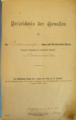 Verzeichnis der Genossen "Bodendorfer Darlehnkassen Verein"