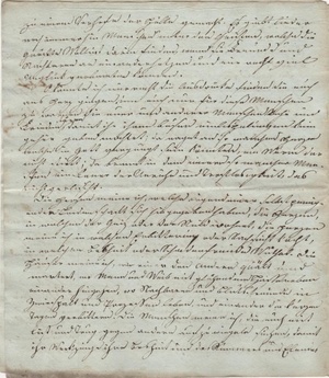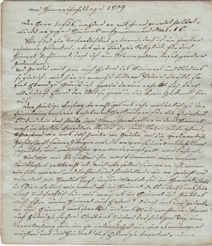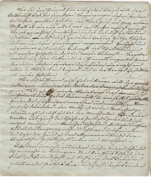 Geschöpftes Papier mit vierfach Faltung (1 Blatt Hoch 210 mm; Breit 184 mm); Fünf handschriftlich beschriebene Seiten. Der Text der Predigt ist noch nicht übersetzt.