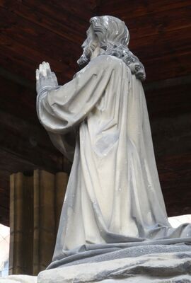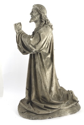 Gewandfigur auf einer ovalen nach oben gewölbten Basis. Dargestellt ist Jesus im Garten Gethsemane beim Gebet vor der Gefangennahme. Er kniet mit zum Gebet erhobenen, gefalteten Händen. Er trägt einen gewellten Vollbart und langes, welliges Haar, das weit über die Schultern reicht. Er ist gekleidet in ein bodenlanges, weites, faltenreiches, einfaches Gewand mit langen, weiten Armen. Die Plastik ist mit metallenen Messpunkten versehen. Die Figur steht ausgearbeitet auf dem Ölberg südlich des Domes zu Speyer. Gottfried Renn schuf die Figur 1856 im Auftrag des Domkapitels als Ersatz für die zerstörten gotischen Figuren aus dem 16. Jahrhundert von Meister Hans von Heilbronn.
