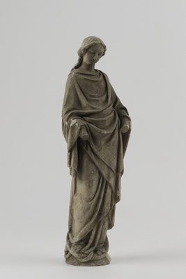 Dargestellt ist Maria als junge Frau, die auf einer abgeflachten Erdkugel (Symbol: Maria als Siegerin über die gesamte Welt), der Mondsichel (apokalyptisches Zeichen) und mit dem linken Fuß auf einer Schlange (Symbol: Sieg über das Übel in der Welt) steht. Ihr Kopf ist in demütiger Haltung zur linken Seite nach unten geneigt. Ihre Augen sind geschlossen. Ihr Haar ist in der Mitte gescheitelt. Die beiden Haarlocken werden von der Stirn zum Hinterkopf hin dicker und sind dort zu drei Haarsträngen gebunden, die bis zur Hüfte reichen. Der mittlere Strang ist zopfartig gebunden. Die Haare der beiden anderen Stränge sind lose und gewellt. Maria ist in eine bodenlange Tunika und einen Überwurf gekleidet, der von ihren angewinkelten Armen nach oben angehoben wird. Die Tunika und der Überwurf zeichnen sich durch einen üppigen Faltenwurf aus. Die Umsetzung des Modells in Holz, vorwiegend in Gold gefasst, befindet sich am Hauptaltar der Kirche St. Marien in Neustadt an der Weinstraße.