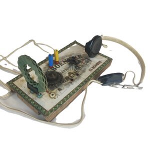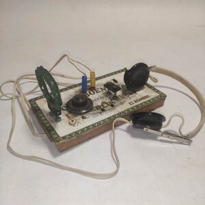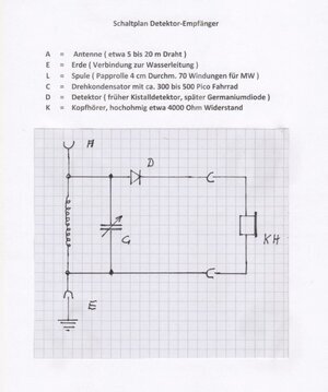 Detektor-Empfänger: Das einfachste Radio Der Klassische Detektorempfänger, das gängige Radio der zwanziger Jahre im letzten Jahrhundert bestand praktisch nur aus einem elektrischen Schwingkreis, dem Detektor und einem Kopfhörer. Für den erfolgreichen Empfang der Radioprogramme war noch eine Langdrahtantenne und ein Anschluß an die Wasserleitung ( Erdleitung ) erforderlich. Der für die Demodulation benutzte Detektor war ein Kristall mit Gleichrichtereigenschaften, auf dem mit einer Bronzefeder nach einem günstigen Punkt für den Empfang gesucht werden musste. Der Empfang der Radiowellen mit einem solchen Empfänger war vor allem kostengünstig, da keine Stromversorgung erforderlich war. Auch in den fünfziger Jahren wurden nochmals Detektorempfänger eingesetzt, da die Stromversorgung sehr häufig ausgefallen ist und für diesen Empfang kein Strom erforderlich war. Für Jugendliche war das Basteln mit solchen Detektoren eine beliebte Basteltätigkeit. Der im Museum vorhandene Detektorempfänger stammt vermutlich aus dieser Zeit. Hier wurde als Detektor allerdings eine Germaniumdiode verwendet, wodurch die mühselige Suche der günstigsten Stelle auf dem Kristall entfallen konnte. Als Bauteileträger dient hier eine Zigarrenschachtel.