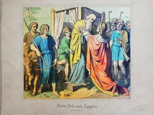 Schulwandbild mit der Darstellung "Verkündigung der Geburt des Johannes" im Stil der Spätnazarener. Rechts oben über dem Bild befindet sich die Römische Zahl XIII für die Kennzeichnung des 13. Motivs aus einer Reihe von insgesamt 40 biblischen Motiven des Alten und Neuen Testaments. Das Bild zeigt das Innere des Tempels. Der Priester Zacharias trägt einen roten Umhang und steht mit einem Räuchergefäß in der Hand vor dem siebenarmigen Leuchter. Rechts vom Altar erscheint ihm der Engel Gabriel mit einer Lilie in der Hand und überbringt ihm die Botschaft von der baldigen Geburt eines Sohnes. Der Entwurf der Grafik wurde von Johann Nepomuk Heinemann spiegelverkehrt auf einen Lithographiestein (meist ein Kalkstein aus Solnhofen im Altmühltal) mit fetthaltiger Tusche oder Kreide gezeichnet, was weiche Konturen und Schattierungen zulässt. Nach dem Ätzen des Drucksteins erfolgte der Druck mit schwarzer Farbe. Anschließend wurden die einzelnen Blätter von Hand koloriert. Relevante Bibelstelle im Evangelium nach Lukas (Lk 1,5-10 und 11-25 ).
