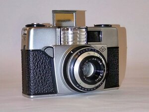 Sucherkamera für den Kleinbildfilm 135 (Negativformat 24 x 36 mm), hergestellt ab 1963 eingeführt. Die Kamera ist voll funktionsfähig. Objektiv: Agfa Color-Agnar 1:2,8/45 mm Entfernungseinstellung nach Piktogrammen. Newton-/Fernrohrsucher. Verschluss: Prontor 125 von Alfred Gauthier, Calmbach, schnellste Verschlusszeit 1/125 Sekunde. Manuelle Belichtungssteuerung. Eingebauter Birnenblitz mit aufklappbarem Reflektor (Bild), Stromversorgung durch eine 15-Volt-Batterie. Filmtyp: In der Kamera befindet sich noch ein AGFA Kleinbildfilm 135 (Negativformat 24 x 36 mm) Objektiv: Agfa Color-Agnar 45mm f/2.8 Filter Slip-On mit Blendeneinstellung bis f/22; Einstellung: Ring und Skala auf dem Objektiv-Verschluss-Tubus; Fokusbereich: 1-8m +inf Fokussierung: manuelle Fokussierung der Frontzelle, Ring- und Entfernungsskala mit Hoch-, Gruppen- und Querformatsymbolen auf dem Objektiv Verschlusszeit: Prontor (Blitzsychronisiert) 125 Geschwindigkeiten: 1/30-1/125 +B; Einstellung: Ring und Skala auf dem Objektiv-Verschluss-Tubus Bedienung: Auslöser an der Vorderseite der Kamera Kabellösebuchse auf der oberen Platte Der Spannhebel wickelt die Folie auch mit kurzem Hub auf die Deckplatte auf Bildzähler: manuelles Zurücksetzen, abnehmender Typ, auf der rechten Seite der Kamera Sucher: heller Bildsucher Aufwickelhebel: klappbare Kurbel, auf der oberen Platte Rückspulauslösung: ein kleiner Knopf neben dem Spannhebel Blitz: Eingebaute Glühbirne AG-1 Blitzgerät, auf der Deckplatte, mit aufklappbarem Reflektor Energieversorgung: Batterie für Blitz: eine 15V Varta Pertrix No.74 Batterie, (In der Kammer dieser Kamera befand sich eine Varta Photo Spezial V 74 PX 15V Batterie) Batteriefach: auf der Rückseite der Deckplatte mit einem Kunststoffdeckel, der mit einem Expositionstisch versehen ist Kalter Schuh: keiner Selbstauslöser: keine Rückenabdeckung: abnehmbar mit der Bodenplatte, öffnet sich durch einen Riegel daran Gravur auf der Bodenplatte: Made in Germany Stativgewinde: 1/4" Material: Korpus: Metall und Bakelit; Gewicht: 342g Serien-Nr.: F 3981