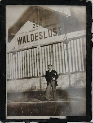 Das Gemälde (Öl auf Leinwand) eines lokalen Künstlers zeigt im tiefen Wald die Konzer Ausflugsgaststätte "Waldeslust" und daneben den so genannten "Weissen Wacken". Die Gaststätte lag im Wald unterhalb der heutigen Zufahrtsstraße zum Konzer Stadtteil Roscheid bei 49.696654 6.590695. Das Gemälde zeigt den Zustand ab 1926 nach dem Ausbau der Ausflugsgaststätte. Diese wurde vom Frühjahr bis zum Herbst an Sonn- und Feiertagen betrieben. Heute (2025) sind von ihr nur noch einige Mauerreste der Fundamente, das Loch des ehemaligen Keller und das Loch für den Stein erhalten. Von den kleinen Steinen die den großen Stein umgeben haben, steht möglicherweise einer weiter unten am Hauptweg. Die Fotos ab Bild 4 zeigen den heutigen Zustand. Interessant ist die Geschichte des Steins. Möglicherweise ist er ein steinzeitlicher Menhir, was sich aber mangels Behauspuren nicht nachweisen lässt. Sicher war es ein mittelalterliche Grenzstein. Der Stein befand sich ursprünglich direkt in Konz, 500 m östlich der Saar und etwa 1,2 km südlich ihrer Mündung in die Mosel neben dem „Berendsborn“, einer eingefassten, dem heiligen Bernhard geweihten Quelle. An dieser Stelle verlief nach Aufzeichnungen von 1574 einst die Hochgerichtsgrenze zwischen den Ämtern Saarburg und Pfalzel. 1649 bzw. 1671 wurden erstmals die Bezeichnungen „bei dem weißen Wack“ bzw. „aufm weißen Stein“ verwendet. Diese Namen könnten sich von der Farbe des Steins herleiten, aber auch von seiner Funktion als Gerichtsstätte (der Begriff Weistum bezeichnet eine mittelalterliche Rechtsquelle). 1912 wurde der Stein von dort entfernt und in dem neu angelegten „Kaiserwäldchen“ östlich von Konz aufgestellt. Anlass war das 25-jährige Thronjubiläum Wilhelms II. sowie der 100. Jahrestag der Niederlage Napoleons in Russland. Geplant war, dass Kaiser Wilhelm II. am 14. Oktober 1913 nach der Einweihung der Kaiser-Wilhelm-Brücke in Trier auch noch das Kaiserwäldchenmit Gasthaus und Menhir in Konz besuchen sollte. Leider kam dies aus Zeitgründen nicht zustande. 2002 wurde der Stein aus dem mittlerweile verwilderten Wäldchen wieder zurück an seinen ursprünglichen Standort in Konz an der Einmündung der Hubert-Zettelmeyer-Straße in die Straße Am Berendsborn gesetzt.