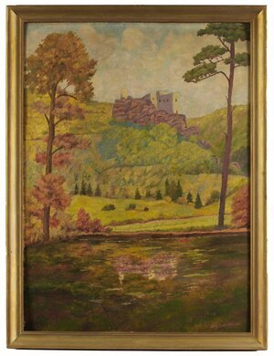 Bei dem Blatt handelt es sich um einen Auszug einer Werbebroschüre des Winzerverein Bodendorf. Auf dem Schwarzweiß-Bild sind links zwei kurze Gedichte zum Wein gedruckt. Das Hauptmotiv ist ein Blick in die Tiefe des Weinkellers mit großen und kleinen Weinfässern.