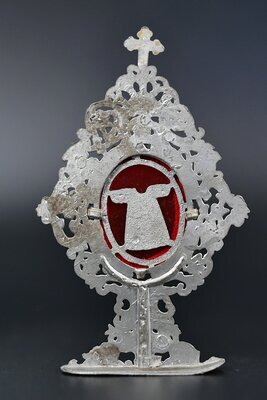Der Heilige Rock ist die wichtigste Reliquie im Bistum Trier und wird im Dom verwahrt. Er ist innerhalb eines Jahrhunderts jedoch nur ein paar mal ein paar Wochen anlässlich einer großen Wallfahrt zu sehen. In der Zeit zwischen den Wallfahrten finden die jährlichen Heilig Rock Tage statt. Unser 10 cm hohes „Reliquiar“ ist eine "Nachbildung" in Spielzeuggröße eines so nicht vorhandenen Reliquiars des Heilige Rocks. In der Mitte des Reliquiars befindet sich unter rotem Zelloloid eine Abbildung des Heiligen Rocks im Miniaturformat. Es ist Teil einer zu einem Kinderaltar gehörenden Sammlung liturgischer Geräte. Der Altar sollte entweder die Jungen auf den Dienst als Messdiener vorbereiten und/oder es war ein Geschenk an das zweitgeborene männliche Kind, das für eine Karriere als „Geistlicher Herr“ vorgesehen war. Typischerweise war es das Kind eines Adeligen oder eines wohlhabenden Bürgerlichen.