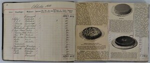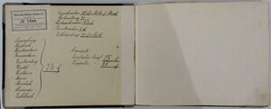 Kochbuch im Abrechnungsbuch eines Transportunternehmers von 1916. Der Unternehmer stammte vermutlich aus Mainz. Eingelegte Rezepte aus den Jahren 1940-1950. Querformatiges Buch mit handschriftlichen Einträgen und eingeklebten Zeitschriftenschnipseln. Zweitverwendung des Abrechnungsbuches als Kochbuch.