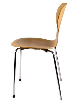 Der Holzstuhl mit der Bezeichnung "Ameise" wurde von Arne Jacobsen 1951 unter der Nr. 3101 entworfen und entwickelte sich im Laufe der Jahre zu einer Design-Ikone. Hersteller ist die Fa. Fritz Hansen in Allerod/Dänemark. Der Stuhl wurde bis Mitte 1980er Jahre produziert. Zum 60jährigen Jubiläum wurde eine Sonderserie aufgelegt. Der Entwurf des Stuhles drückt den "nordischen Minimalismus" mit seiner schnörkellosen und gleichzeitig unverwechselbaren Form aus. Festigkeit, Flexibilität im Gebrauch und Langlebigkeit trotz Leichtbauweise zeichnen diesen Stuhl aus. Ursprünglich entworfen 1951 für den Pharmaziehersteller Novo Nordisk mit 3 Beinen, später dann vierbeinig gehörte er zum Mobiliar des Mainzer Rathauses, welches von Arne Jacobsen entworfen wurde und durch das Büro Weitling und Dissing nach dem Tode des Architekten vollendet wurde (1970-1974).