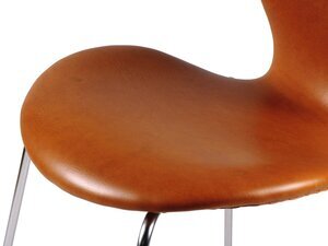Der Lederstuhl in Cognacbraun mit der Bezeichnung "Serie 7" wurde von Arne Jacobsen 1952 unter der Nr. 3107 entworfen und entwickelte sich im Laufe der Jahre zu einer Design-Ikone. Hersteller ist die Fa. Fritz Hansen in Allerod/Dänemark. Der Stuhl wurde bis Mitte 1980er Jahre produziert. Zum 60jährigen Jubiläum wurde eine Sonderserie aufgelegt. Der Entwurf des Stuhles drückt den "nordischen Minimalismus" mit seiner schnörkellosen und gleichzeitig unverwechselbaren Form aus. Festigkeit, Flexibilität im Gebrauch und Langlebigkeit trotz Leichtbauweise zeichnen diesen Stuhl aus. Dieser Stuhl gehörte zum Mobiliar des Mainzer Rathauses, welches von Arne Jacobsen entworfen wurde und durch das Büro Weitling und Dissing nach dem Tode des Architekten vollendet wurde (1970-1974).