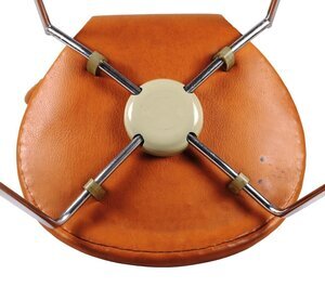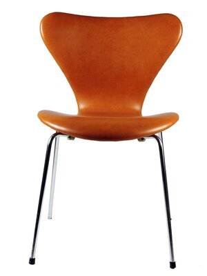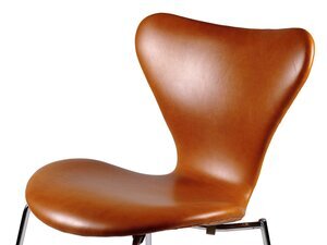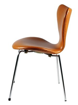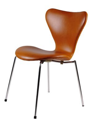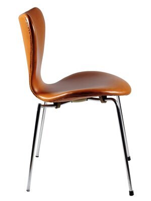 Der Lederstuhl in Cognacbraun mit der Bezeichnung "Serie 7" wurde von Arne Jacobsen 1952 unter der Nr. 3107 entworfen und entwickelte sich im Laufe der Jahre zu einer Design-Ikone. Hersteller ist die Fa. Fritz Hansen in Allerod/Dänemark. Der Stuhl wurde bis Mitte 1980er Jahre produziert. Zum 60jährigen Jubiläum wurde eine Sonderserie aufgelegt. Der Entwurf des Stuhles drückt den "nordischen Minimalismus" mit seiner schnörkellosen und gleichzeitig unverwechselbaren Form aus. Festigkeit, Flexibilität im Gebrauch und Langlebigkeit trotz Leichtbauweise zeichnen diesen Stuhl aus. Dieser Stuhl gehörte zum Mobiliar des Mainzer Rathauses, welches von Arne Jacobsen entworfen wurde und durch das Büro Weitling und Dissing nach dem Tode des Architekten vollendet wurde (1970-1974).
