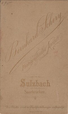 Das Brustporträt eines jungen Mannes, der mit ernstem Gesichtsausdruck am Betrachter vorbeischaut. Sein Jacket ist am obersten Knopf geschlossen, darunter bleibt es geöffnet. In der Brusttasche des Jackets ist ein Einstecktuch zu erkennen. Unter dem Jacket trägt der Mann ein weißes Hemd mit gestärktem Stehkragen. Die Fotografie ist typisch für die Zeit um 1900 im Stil einer Carte de Visite aufgenommen, wobei mit einer hellen Vignettierung gearbeitet wurde. Um eine Vignette zu erzeugen gab es bereits um 1900 einige Möglichkeiten. So konnte man bereits im Fotografie-Prozess eine relativ weit geöffnete Blende wählen, sodass nicht das ganze Bild scharf wurde, sondern nur der Mittelteil. Die Bildränder erschienen durch die Unschärfe auf diese Weise bereits weich gezeichnet und erleichterten den nächsten Schritt. Dieser wurde beim Entwicklungsprozess in der Dunkelkammer befolgt, wobei Masken oder Filter verwendet wurden, die Bereiche, welche dunkler werden sollten, abdeckten. Ebenso konnte man beim Fotografieren im Objektiv Vignettierungsfilter einsetzen, wenn das Objektiv an sich nicht bereits zur Vignettierung neigte, wodurch man das Bild bereits mit einer Vignette fotografierte. Auch mit manueller Retusche mit Pinsel und Tusche ließen sich Vignetten fertigen. Auf dem Karton unter der Fotografie sind der Name des Fotografen und der Entstehungsort der Fotografie vermerkt. Diese Angaben befinden sich in geschwungener Schrift auch auf der Kartonrückseite, ebenso wie die Information zur Plattenaufbewahrung für Nachbestellungen.