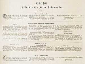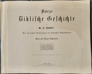 Bilder Bibel von J. Heinemann. Teil I : Umschlag, Einführung und Bildbeschreibungen Die Edition enthielt ursprünglich 40 herausnehmbare kartonierte Blätter mit den Darstellungen der wichtigsten Ereignissen der Biblischen Geschichte. Dazu ein Vorwort und (nacherzählte) Beschreibungen der einzelnen Bilder. Von den ursprünglich 40 Bildern sind 8 abgängig und 32 erhalten. Verfasst, war: Dr. J. Schuster