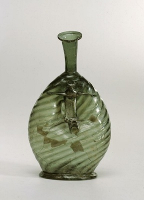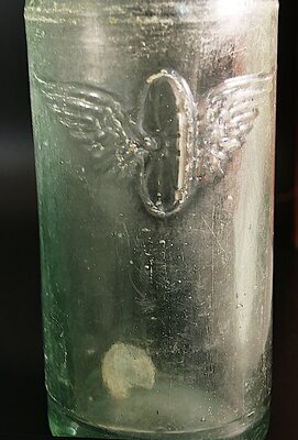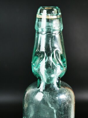 Drei Kugelverschlussflaschen, auch Boller(wasser)flasche, Klickerflasche oder Knickerflasche genannt. Der Kugelverschluss funktioniert nach dem Prinzip eines Kugelventils. Er setzt sich aus einer im Inneren der Flasche frei beweglichen Glaskugel und einem Gummiring zusammen, der als Dichtung in das Glas unterhalb der Flaschenöffnung eingebettet ist. Als Verschluss dient die gläserne Kugel, die durch den Druck der Kohlensäure nach oben in den konischen Flaschenhals gedrückt wird und diesen verschließt. Eine genaue Erklärung der Funktionsweise ist auf der Wikipediaseite (s. Link unten) zu finden. Bei den Flaschen handelt es sich um einen Bodenfund mit starken Gebrauchsspuren. Die drei Flaschen sind weitgehend baugleich. Die auf dem ersten Foto links stehende Flasche besitzt als Aufschrift die Initialen H.W.K. Die mittlere Flasche besitzt keine Aufschrift, sondern als reliefartige Struktur das Reichsbahnlogo mit dem geflügelten Rad. Dies könnte mit dem großen Eisenbahnausbesserungswerk in in Konz in Verbindung stehen. Die rechte Flasche besitzt die rätselhafte Aufschrift "Conzer Limonadenfabrik". Selbst in der sehr umfangreichen Konzer Chronik wird sie nicht erwähnt. Denkbar wäre, dass die Schnapsbrennerei Weber in der Alten Römerstraße (bei der Einmündung in die Kaiserstraße) oder die Zuckerfabrik beim Deutschherrenhof auch Limonaden hergestellt hat. Da Konz hier noch mit C geschrieben ist, ist die Flasche wohl vor 1933 hergestellt worden.