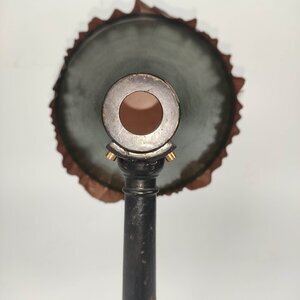 Luftstoßapparat: Es handelt sich um ein physikalisches Experimentiergerät zur Untersuchung der Entstehung und Fortpflanzung des Schalles. Nach Reusch: Zum Nachweis, dass sich Lufterschütterungen viel langsamer fortbewegen als Schallwellen. Informationen aus Katalog E.Leybolds Nachfolger A.-G.: Einrichtungen und Apparate für den Physikalischen Untericht von 1929. Ein Metalltrichter, mit einer etwa 30 cm großen mit Folie bespannten Seite und im Abstand von etwa 25 cm einer etwa 2 cm Auslassöffnung, montiert auf einem etwa 30 cm hohen Stativ.