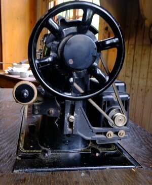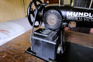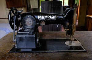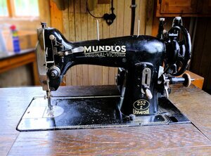Die Firma Mundlos aus Magdeburg existierte seit 1863. Unser Objekt, eine „Mundlos Viktoria 252 Z Universal“ mit der Fabriknummer 5.327.577 wurde nach 1941 gebaut. Das Modell ist auf einen offenen, hölzernen Unterbau montiert. 2 Schubladen ermöglichen die Aufnahme von Nähutensilien. In den Unterbau integriert ist der mechanische Antrieb, der mittels Lederriemen die Maschine antreibt. In diesem Zustand erfolgte die ursprüngliche Auslieferung. Erst später erfolgte eine Umrüstung auf einen elektrischen Antrieb. Der angebaute E-Motor stammt von der Firma Quick aus Darmstadt, Typ 56/6 mit 6000 Upm. Die Vorbereitung für eine Umrüstung war bei der Konstruktion berücksichtigt worden. Dies betrifft die Halterung für den Motor, aber auch den Einbau des stabilen und belastbare Schnurketten-Antriebs. Die Nähmaschine ist schwarz lackiert und trägt auf dem Maschinenarm beiderseits, den Firmennamen. Die Grundplatte ist mit einem rundum laufenden, goldfarbenen Muster verziert. Die einstmals vorhandene Holzabdeckung ist nicht mehr vorhanden. Die Universal-Schnell-Nähmaschine der Klasse 252 sind mit einer pendelnden Nadelstange ausgerüstet, und eignen sich neben allen gewöhnlichen Näharbeiten zum Zick-Zack-Nähen, Knopfannähen, Knopflochnähen sowie zur Lochstickerei, Biesn- und Bogenzickzackarbeiten geeignet. Zu diesem MaschinenTyp ist eine Gebrauchsanweisung erhalten geblieben (Sie Link)