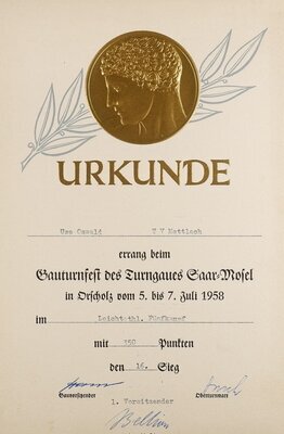 Auf dem Bild sieht man eine Urkunde mit dem klassischen Motiv des letzten Abendmahls in einem schwarzen Rahmen hinter Glas eingelegt.. Ausgestellt wurde die Urkunde für Heribert Wolter am 3. April 1932 von Pfarrer Hoennig in Bodendorf/Ahr. Eine Kommunionsurkunde ist ein feierliches Dokument, das bestätigt, dass jemand die erste heilige Kommunion empfangen hat – ein bedeutender Moment im Leben vieler katholischer Christinnen und Christen. Solche Urkunden sind nicht nur religiöse Nachweise, sondern auch wertvolle Erinnerungsstücke, die oft gerahmt und über Generationen hinweg aufbewahrt werden. Sie erzählen ein Stück Familiengeschichte.