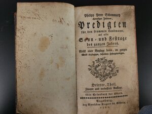 Philipp Peter Schormatz; Predigten für den frommen Landmann auf alle Sonn- und Feiertage des ganzen Jahres. Dritter Teil, Zweite Auflage. 1781. 714 Seiten. Predigten vom 11. Sonntag nach Pfingsten bis zum 20. Sonntag nach Pfingsten und danach im Anschluss Predigten für die Feste auserwählter Heiliger. Ein anderes Exemplar dieses Buches wurde von der Staatsbibliothek München komplett digitalisiert (und ebenso die ersten beiden Bände). Siehe Link unten.