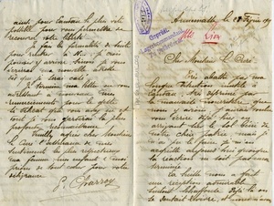 "Lager Landau. 1914 - 16." Rückseite handschriftlich: "Pfarrer Lion von St. Mihiel. O. Pfeiffer, Kaiserslautern." Jules Lion (geb. 11. Februar 1861 in Verdun), war Pfarrer in Ozerailles und wurde am 23. September 1914 in Varnéville gefangengenommen. Bis Ende 1915 war er in Landau interniert. Im Februar 1917 wird er auf der Gefangenenliste des Lagers Heidelberg als aus dem Reserve Lazarett 4 in Rastatt kommend geführt. Er wurde am 22. März 1917 in der Schweiz (Montreux, Glion am Genfer See) interniert und am 4. Mai 1917 repatriiert, da er älter als 55 Jahre alt war. [Cora Tremmel]