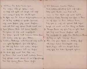 14zeiliges Gedicht, teilweise in Mundart geschrieben, zur Hochzeit von Peter Orth. Das Gedicht ist in Sütterlin mit feiner Feder geschrieben.