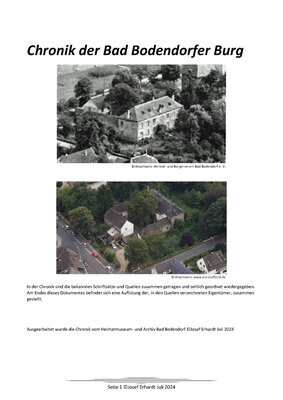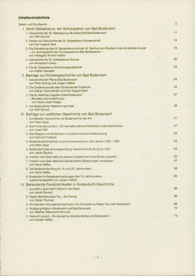 In rotem Umschlag eingebunden wurden die Geschichte des Vereins, und die Kirchliche sowie die weltliche geistliche Geschichte von Bodendorf niedergeschrieben. Bedeutende Persönlichkeiten, Natur- und Wirtschaftskunde und Beiträge zur Bodendorfer Volkskunde runden den Inhalt des Buches ab. Das Festbuch steht als PDF-Datei zur Verfügung und wird auf Wunsch zugestellt.