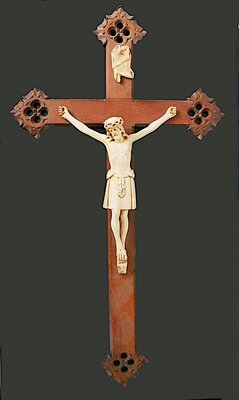 Braunes Wandkreuz mit durchbrochenen Vierpässen