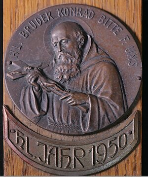 Holzkruzifix mit dem Hl. Bruder Konrad