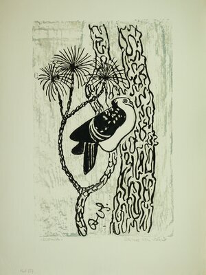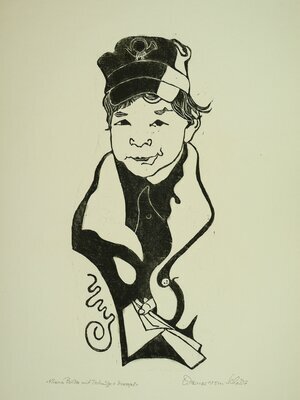 Werner vom Scheidt wurde 1894 in Lothringen als Sohn eines Fabrikanten geboren. Nach einigen Jahren Kriegsdienst studierte er ab 1919 in Heidelberg Nationalökonomie. Dort lernte er die Lyrikerin Martha Saalfeld kennen, die er 1928 heiratete. Bereits in den 20ern wurde er künstlerisch tätig und entschied sich für diese Laufbahn. Schon früh beschäftigte er sich mit russischer Literatur, später illustrierte er Werke von Gogol und Turgenjew. Für den Gedichtzyklus "Der unendliche Weg" von Martha Saalfeld schuf Werner vom Scheidt Holzschnitte. 1927 erfolgte seine erste Veröffentlichung von Illustrationen in Paul Westheims "Kunstblatt". Von 1930-32 arbeitete er bei Alexander Kanoldt in Garmisch. Mit dem Künstler Otto Pankok war er eng befreundet und stellte auch mit ihm gemeinsam aus. In diesem Zusammenhang stand die Übersiedlung nach Düsseldorf. Da Martha Saalfeld unter den Nationalsozialisten ein Veröffentlichungsverbot aufgelegt wurde, griff sie auf ihren ursprünglichen Beruf als Apothekerin zurück, der zur Lebensgrundlage des Paares geriet. Es folgten kriegsbedingte Ortswechsel nach Babenhausen (Hessen) und Wasserburg an der Inn. 1948 zog das Paar nach Bad Bergzabern. Von Werner vom Scheidt sind ca. 1500 graphische Werke erhalten. Seit den 1960er Jahren experimentierte er mit verschiedenen druckgraphischen Techniken. Er ist bekannt für seine Erfindung des „Kordeldrucks“ mit vielen Darstellungen von Blumen, Tieren und Porträts. Die Druckgraphik zeigt das Porträt eines Mannes. Der Kopf füllt beinahe den gesamten Bildraum aus. Der Oberkörper wird nurmehr mittels eines Kragens angedeutet. Der als "Ssemjon" bezeichnete Mann trägt mittellanges, gewelltes Haar und einen gekräuselten, bauschigen Bart, der sein ganzes unteres Gesicht bedeckt. Die breite Nase, die buschigen dunklen Augenbrauen und faltigen Tränensäcke unter seinen Augen tragen zusätzlich zu einer rustikalen Wirkung bei. "Ssemjon" ist die russisch-orthodoxe Form des Namens Simon, der bei Autoren wie Dostojewski und Tolstoi vorkommt. Unten mit Bleistift bezeichnet "Ssemjon" und signiert