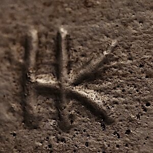 Das Kreuz ist in in der Formensprache der Neugotik gestaltet: Dreinageltyp, Nimbus hinter/über dem Kopf Christi, darüber der Titulus in Form einer Buchrolle sowie vier Passen mit einer vierblättrigen Blüte im inneren. Der auffällige und für das Kreuz eigentlich zu große dreieckige Sockel ist im Stil des Neo-Rokoko gestaltet.