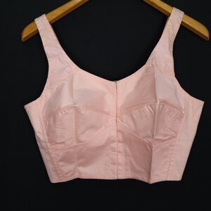 Das Modell 10018 der Marke Anita aus rosa Baumwolle gefertigt. Der untere Bereich der Cups ist mit dekorativen Steppnähten verziert die die Brust halbkreisförmig umrahmen, während der obere Teil aus einem mit Blumen bestickten Stoff der gleichen Farbe gefertigt ist. Den Ausschnitt ziert eine rosa Spitze. Für Tragekomfort sind die Träger breit gehalten und innen mit einem Velours-Material ausgekleidet. Dieses Modell ist drei Mal im Bestand des Museums vorhanden.