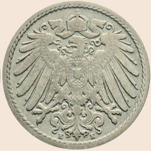 Auf dem Avers trägt die Münze zentral die Zahl "5" des Nominals, welche kreisförmig von der Nominaleinheit "PFENNIG", sowie einer Jahreszahl und dem Landesnamen "DEUTSCHES REICH" umgeben ist. Das Wort "PFENNIG" ist von zwei Punkten eingefasst. Das zentrale Motiv auf dem Revers ist der große gekrönte Reichsadler mit preußischem Wappenadler auf der Brust. Rechts und links neben dem Schwanz des Adlers befindet sich das Kürzel der Prägestätte.