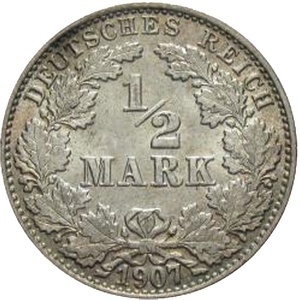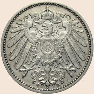 Das Avers zeigt das Nominal "1 MARK" im Eichenkranz. Darüber befindet sich der Landesname "DEUTSCHES REICH". Darunter befindet sich die Jahreszahl. Auf dem Revers befindet sich der große gekrönte Reichsadler mit preußischem Wappenadler auf der Brust im Eichenkranz. Darunter befindet sich das Kürzel der Prägestätte. Der Rand ist geriffelt.