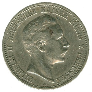 Das Avers zeigt das Kopfbild von Kaiser Wilhelm II. mit Blickrichtung nach rechts über dem Kürzel der Prägestätte. Die Umschrift lautet "WILHELM II DEUTSCHER KAISER KÖNIG V. PREUSSEN". Auf dem Revers befindet sich der große gekrönte Reichsadler mit preußischem Wappenadler auf der Brust. Die Umschrift enthält den Landesnamen "DEUTSCHES REICH", die Jahreszahl und das Nominal "ZWEI MARK" zwischen zwei Sternen. Der Rand ist geriffelt.