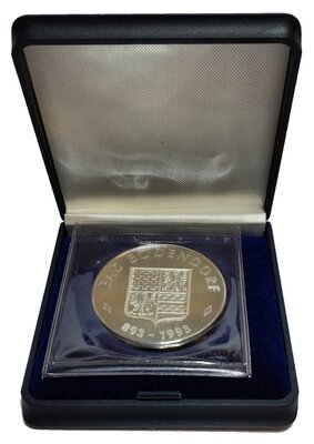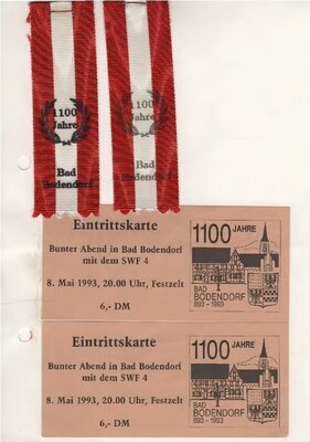 Im Prümer Grundbuch wurde Bad Bodendorf erstmals im Jahre 893 erwähnt. Das dortige Kloster besaß einige Weinberge in Bad Bodendorf. Dies wird zum Anlass genommen, die 1100-jährige Wiederkehr der erstmaligen Ortsnennung zu feiern. Planung und Organisation des Festgeschehens wurde vom Heimat- und Bürgerverein Bad Bodendorf durchgeführt. Als Auftakt zu den Festaktivitäten gabt die Kreissparkasse eine Jubiläumsmedaille heraus. Die ersten prägefrischen Exemplare überreichten KSK-Filialdirektor und der KSK-Geschäftsstellenleiter von Bad Bodendorf an Bürgermeister der Stadt Sinzig und den Ortsvorsteher Karl-August Seel sowie an die Vorsitzenden des Heimat- und Bürgervereins. Auf der Vorderseite der Medaille ist eine Ansicht aus der Dorfstraße mit Blick auf die St. Sebastianuskirche abgebildet. Die Umschrift lautet "1100 Jahre Bad Bodendorf". Die Rückseite zeigt das Bad Bodendorfer Ortswappen mit den Jahreszahlen 893 - 1993. Die Jubiläumsmedaillen wurden in den Kreissparkassen-Filialen in Bad Bodendorf, Koisdorf, Löhndorf, Sinzig und Westum zum Kauf angeboten. Die Stücke in Feinsilber (0 35 mm/15g) kosteten 49,50 Mark. Von der Ausführung in Dukatengold (0 20 mm/3,49 g) wurden nur 10 Stück zum Preis von 220 Mark offeriert. Nicht nur für Sammler waren diese Medaillen eine interessante und wertbeständige Erinnerung an das 1100-jährige Jubiläum.