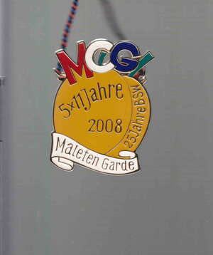 Zylindrischen nach unten verjüngendes durchsichtigen Glas mit dem Emblem zur 1100 Jahrfeier (Breit x Hoch 49,5 x 50 mm) Im Emblem sind als Elemente die Überschrift "11 Jahre" und in der Fußzeile "BAD BODENDORF 893 - 1993", sowie das Dorfwappen, die Kirche, Fachwerkhäuser und ein Schwenkbrunnen zu finden.