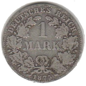 Das Avers zeigt das Nominal "1 MARK" im Eichenkranz. Darüber befindet sich der Landesname "DEUTSCHES REICH". Darunter befindet sich die Jahreszahl. Zentrales Motiv ist der kleine gekrönte Reichsadler mit preußischem Wappenadler auf der Brust. Rechts und links neben dem Schwanz des Adlers befindet sich das Kürzel der Prägestätte. Der Rand ist geriffelt.