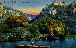 Feldpostkarte vom 25. März 1916 an Familie Ziegler in Mannheim-Neckarau. Auf der Vorderseite: Kolorierte Abbildung des Schlosses in Mühlheim im Donautal. Auf der Rückseite: Stempel der 2. Feldkompagnie - 1. Ersatz-Bataillon 113, Stempel des Truppenübungsplatzes Heuberg Koblenz, handschriftliches Grußwort.