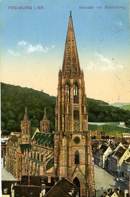Feldpostkarte "Münster mit Schlossberg" aus Freiburg 1915