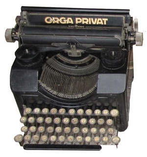 Die "Orga Privat" wurde 1923, also kurz nach der Währungsreform nach dem ersten Weltkrieg, von Ludwig Reischl konstruiert und von der Spielzeugfabrik "Bing-Werke vorm. Gebr. Bing AG" in Nürnberg in der klassische Form der Typenhebelmaschine mit Vorderaufschlag, mit einem vierreihigen Tastenfeld mit 42 Tasten und 84 Zeichen, Vorderaufschlag und einfacher Umschaltung (Halbtastatur) hergestellt. Die "Orga Privat" war die erste Schreibmaschine mit einem selbsttragenden Blechgehäuse, was eine einfache Bauweise ermöglichten mit einem günstigen Verkaufspreis. Seriennummer 23976; Made in Bavaria