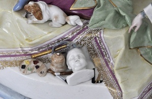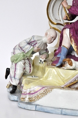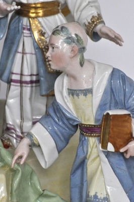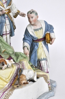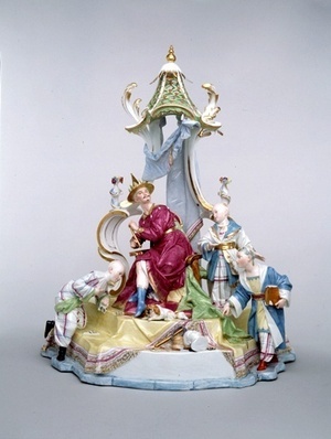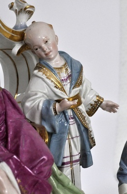 "Der chinesische Kaiser" bildete das Mittelstück eines festlich gedeckten Tisches, zu dem noch weitere Figurengruppen und Einzelfiguren gehörten. Die Chinamode war im 18. Jahrhundert weit verbreitet und geht auf die verklärte Vorstellung zurück, China sei das Land der Weisheit und des irdischen Glücks. Die Figurengruppe hat weiteren Bedeutungsinhalt: sie ist die Darstellung des "guten Herrschers". Unter einem Baldachin sitzt der Regent auf einem Thron. Die ihm zugewandten Höflinge nähern sich demütig und sind auf den Kaiser hin ausgerichtet, der ihre Bitten und Anliegen entgegennimmt. Auch den Künsten ist dieser Herrscher zugetan, denn auf der Stufe vor seinem Thron liegt eine modellierte Büste zusammen mit einem Schlegel. Sicherlich war dieses Detail als Huldigung Melchiors an seinen Landesherrn, den Mainzer Kurfürsten Emmerich Joseph von Breidbach-Bürresheim gemeint, dem er auf diese Weise seine Kunst zu Füßen legte. Die Figurengruppe ist das früheste bekannte Arbeit des Bildhauers und Modelleurs Johann Peter Melchior für die Höchster Porzellanmanufaktur. Er war hier ab 1765 tätig und von 1767 bis 1777 Modellmeister der Manufaktur. Seine Entwürfe für Figuren und Geschirre haben maßgeblich zum Erfolg der Höchster Porzellanmanufaktur beigetragen und wurden vielerorts von anderen Manufakturen kopiert.
