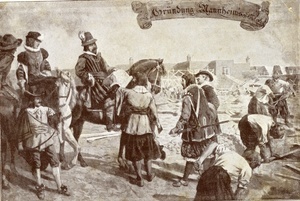 Die unbeschriftete und ungelaufene Postkarte zeigt eine schwarz-weiß Abbildung der Darstellung der Gründung Mannheims von A. Wolf. Die Rückseite ist bedruckt mit: "Neue Mannheimer Zeitung / Die Gründung Mannheim’s durch Kurfürst Friedrich IV. am 17. III. 1606 / Aus ’Sage und Geschichte der Stadt Mannheim’ / Verlag: Druckerei Dr. Haas, Mannheim".