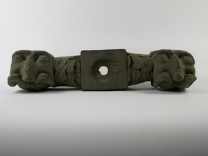 Riegel in Gestalt eines Kopfes von einem Meeresungeheuer, mit weitaufgerissenem Maul. Riegel rot gestrichen.