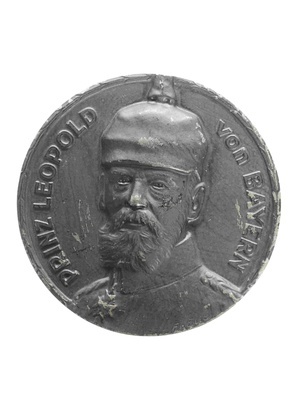 Die Vorderseite der Medaille zeigt Prinz Leopold von Bayern in Uniform mit Pickelhaube inkl. Tarnüberzug im Dreiviertelprofil. Links/rechts daneben "Prinz Leopold/von Bayern". Darunter "Fr. Eue". Die Rückseite zeigt einen oberkörperfreien Jüngling mit Schwert vor einem Stadtpanorama am Horizont. Am Medaillenrand links/rechts daneben "Der Eroberer/von Warschau". Links/rechts des Halses "5.8./1915". Am rechten unteren Rand "Grünthal".