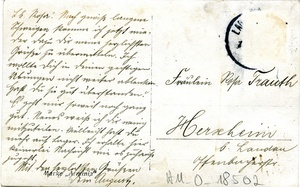 Die Fotopostkarte zeigt auf der Vorderseite das Gruppenportrait von 18 Unteroffizieren einer 9. Kompanie. Am unteren linken Bildrand befindet sich die handschriftlich mit blauer Tinte verfasste Notiz "Unteroffiziere der 9. Komp.". Auf der Rückseite eine handschriftliche Nachricht, mit Bleistift und in Sütterlin verfasst. Absender ist ein gewisser August (Otto?), wohl einer der auf der Vorderseite portraitierten Unteroffiziere. Die untere Reihe trägt in der Mitte ein Fass mit der Aufschrift "1913 Erholungsheim Hammelburg 9/07". Empfänger ist Fräulein Rosa Trauth aus Herxheim bei Landau, Offenburgerstraße. Das Datum des Poststempels ist nicht mehr zu lesen, da es mit einem Klebestreifen abgezogen wurde. Ebenfalls auf der Rückseite befindet sich am unteren linken Rand die Aufschrift "Marke ’Arminia’ ".