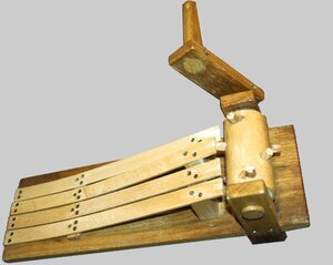 Das Gehäuse besteht aus einem Kasten aus 5 mm dicke Holzplatten. Im Kasten ist einen mit einer Kurbel angetriebenen Walze mit Stiften. Sie Stifte heben eine auf Spannung stehende Hartholzlatten an und beim herunterschnellen der Holzplatte auf den Boden der Rassel entsteht ein schlagendes Geräusch. Die Schnitzereien auf dem Kasten sind Initialen von den Trägern, die sich hier verewigten. Die Träger waren immer die ältesten der letzten Schulklasse. Durch diese Schnitzereien ist das Holz des Kastens dünn und an einer Ecke ein Stück abgebrochen. Ein Bild Zeigt den Originalkasten und das zweite Bild den Innenaufbau einer ähnlichen Rassel.
