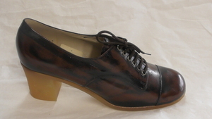Ein Paar Herrenreitstiefel aus schwarzem Leder. Runde Form, leichter Absatz (ca. 2cm), ein Riemen mit Schnalle, welcher sich am Einstieg befindet, dient dem Verschluss. Genähte Ledersohle (Kunststoff am Absatz). Die Schuhe ähneln diversen anderen Reitstiefeln aus der Sammlung des Schuhmuseums, eine genauere Beschreibung von Reitstiefeln im Allgemeinen ist bei 154-2018 zu finden.